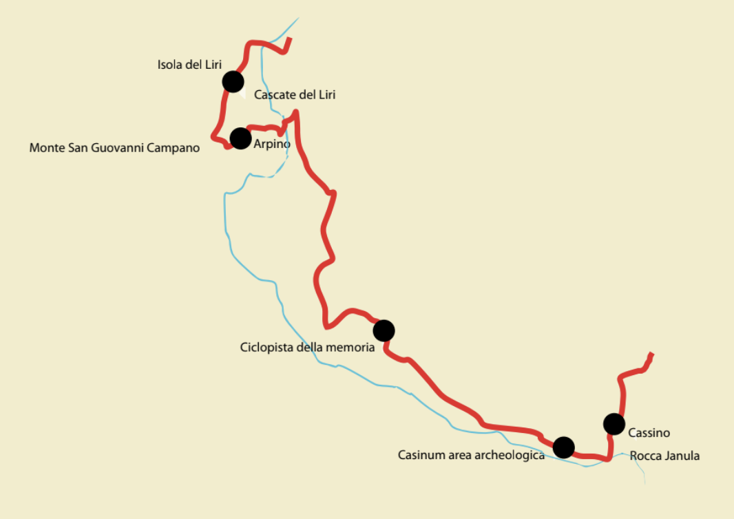 In questa “tappa” si respira storia ad ogni pedalata: dall’archeologia industriale di Isola del Liri ai luoghi di Cicerone lungo l’antica Via Latina.
