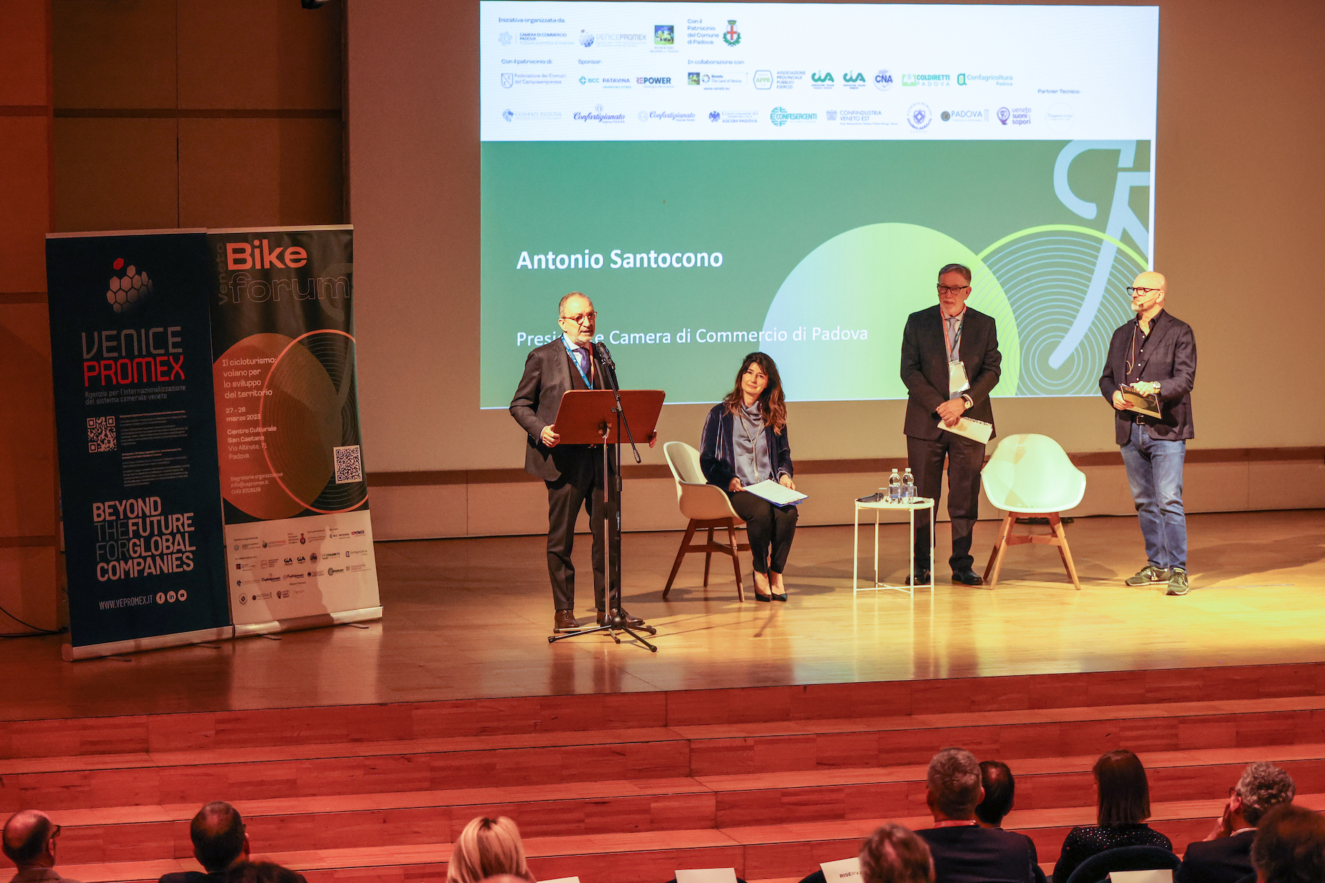 Una due giorni di talk e workshop pensata per aiutare ad intercettare il target dei cicloturisti, italiani e esteri, e fare da volano per l’importante indotto economico che il settore genera. L’evento voluto dalla Camera di Commercio di Padova e organizzato da Venicepromex – Agenzia per l’internazionalizzazione del sistema camerale veneto, con il patrocinio della Regione Veneto, del Comune di Padova e della Federazione dei Comuni del Camposampierese, e in collaborazione con Appe Padova, Cia Padova, Cia Veneto, Cna Padova, Coldiretti Padova, Confagricoltura Padova, Confapi Padova, Confartigianato Imprese Padova, Confartigianato Imprese Veneto, Confcommercio Padova, Confesercenti del Veneto Centrale, Confindustria Veneto Est, Federalberghi Veneto, Padova Convention Bureau DMO, Veneto Suoni e Sapori e il supporto tecnico di Viaggiare Curiosi e Dynatek.