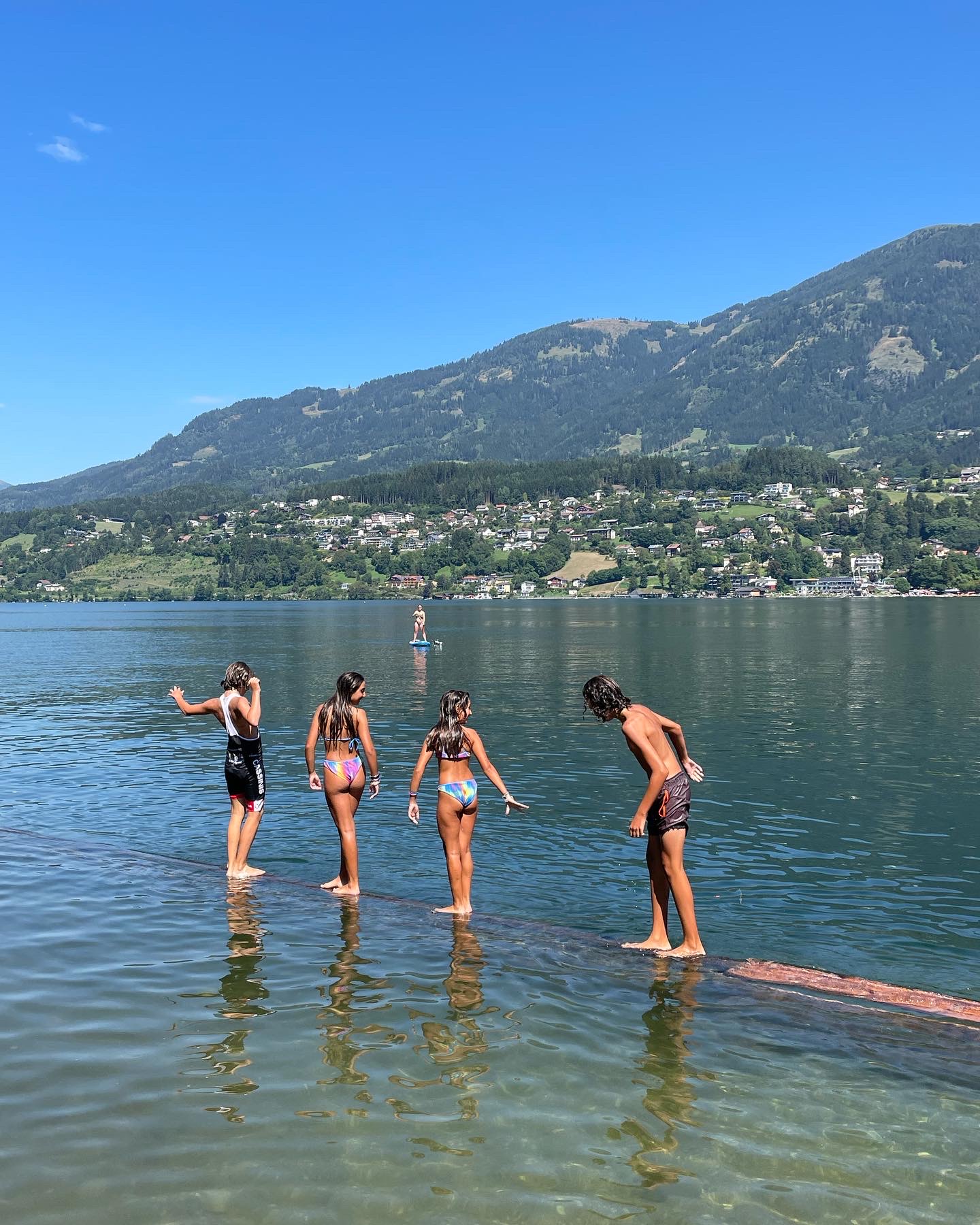 IV tappa – Il gruppo è collaudatissimo, Ale e Ricky sono simpaticissimi e hanno trovato affinità con Diana e Gaia, pedalano, chiacchierano, insomma si divertono. Con Federica e Simone ci troviamo molto bene, c’è sintonia. Quindi ci sono tutte le condizioni per una tappa epica. Nella splendida caffetteria Moser di Spittal, decidiamo il piano! Deviazione alla tappa, con meta a Millstatt am See, un lago enorme, dove ci fermiamo in una meravigliosa spiaggetta per tuffarci in acqua.