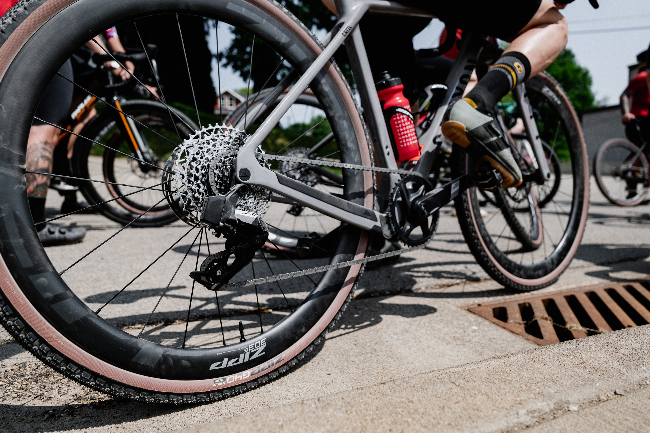 Nel 90 per cento dei casi è lo pneumatico anteriore che perde aderenza quando il fondo non é asfaltato. L’anteriore può slittare via o in curva oppure può farlo nel caso in cui lo pneumatico incontri una contropendenza, peggio un canale che fende longitudinalmente la sede stradale. La scelta del tipo di pneumatico può incidere molto per evitare problemi di questo tipo: è ovvio che si parla di guida gravel in fuoristrada gli pneumatici in gioco dovranno essere adeguatamente tassellati. In realtà, più che la tassellatura della gomma, quel che conta è la pressione a cui questa è stata gonfiata. Quest’ultima dovrà sempre essere in funzione prima del peso dell’utilizzatore, poi della sezione dello pneumatico stesso e infine del tipo di fondo che si va ad affrontare, ma è fuori di dubbio che le pressioni in fuoristrada dovranno essere indicativamente basse, anche di un terzo rispetto a quelle che si adottano su asfalto su una ipotetica road-bike.