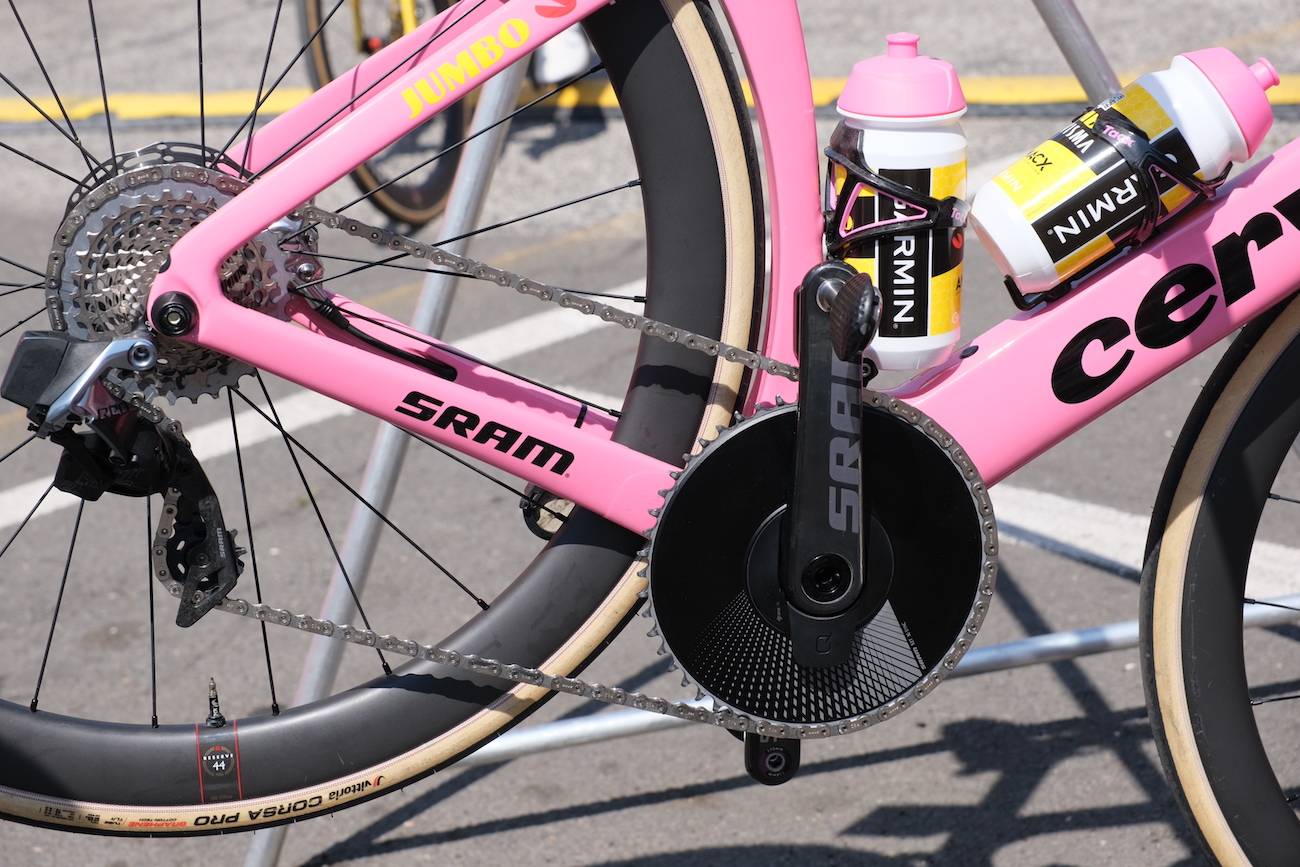 Tanto per cominciare, Roglič ha utilizzato la corona singola solo in alcune tappe del Giro d’Italia 2023, quando nelle altre ha continuato a privilegiare la classica doppia.