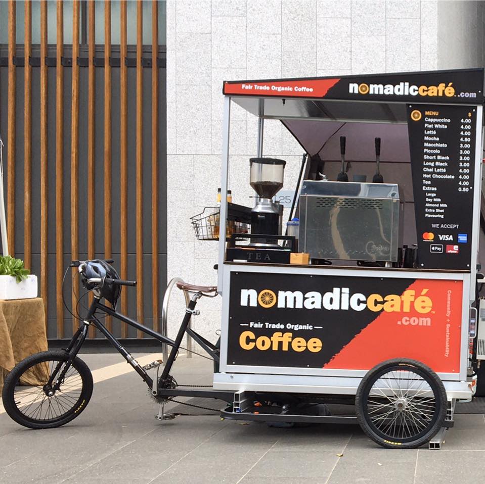 Rivolto agli amanti del caffè australiani, il Nomadic serve rigorosamente caffè biologico da commercio equo. Il cargo si può affittare per ogni tipo di evento, catering e festa. È stato lanciato nel giugno 2013 come servizio sostenibile rivolto alle comunità ed è aperto 24 ore su 24. http://www.nomadiccafe.com.au/
