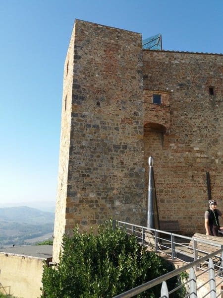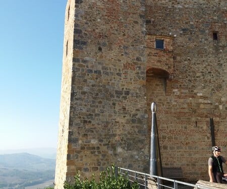 Sulla strada del ritorno, un cartello che suggerisce una deviazione su uno sterrato a destra cattura la mia attenzione: si tratta del Castello di Casole (https://www.castellodicasole.com/) altra struttura aderente al Bike Hub. Un hotel a cinque stelle all’interno di un castello le cui origini si perdono nei meandri del X secolo, poi borgo medievale, dunque residenza di famiglie nobiliari senesi e infine del regista Luchino Visconti, che vi ospitò attori e star di Hollywood. Oggi la tenuta offre servizi di qualsiasi tipo, dal centro Spa e benessere fino alle escursioni guidate in mountain bike e alla possibilità di affittare suite indipendenti ricavate dai casali rustici un tempo parte della tenuta nobiliare. E per finire la visita, non può mancare un omaggio a quello che è l’essenza stessa delle terre toscane, al punto che il Bike Hub ha voluto farne il marchio stesso del progetto: il vino.