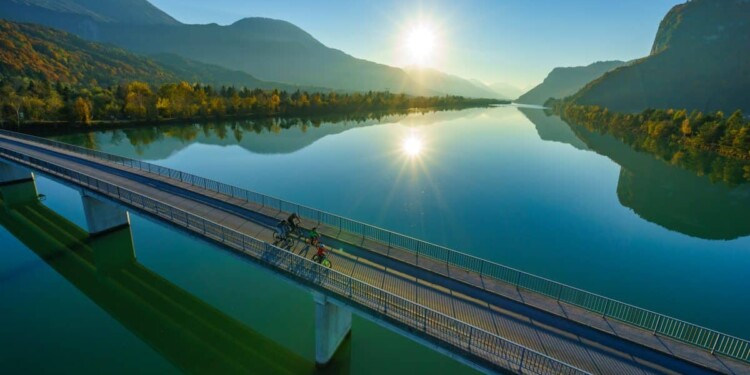 Si possono attraversare anche tre nazioni in un solo giorno: Austria, Slovenia e Italia. Il famoso “3 Länder Tour” inizia vicino a Villach e segue dapprima strade tranquille fino al confine con l’Italia. A Tarvisio si devia in una valle laterale che conduce al lago di Predil affrontando alcuni tornanti fino al passo Predil. Da qui ci si trova già in territorio sloveno, nella zona del Parco Nazionale del Triglav. Si prosegue quindi nella famosa valle dell’Isonzo (Soča), che con le sue acque turchesi è uno dei fiumi più belli d’Europa. La salita al passo Vrsič compensa delle fatiche con la vista sulla valle di Trenta prima di scendere veloci in direzione di Kranjska Gora. L’ultima salita porta i ciclisti al passo di Koren e da qui oltre il confine austriaco di nuovo in Carinzia.