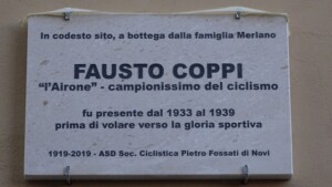 Si parte dunque, per questi due giorni di ciclismo storico. E poco dopo, ecco la prima veloce tappa nella storia. Deponiamo una corona davanti alla lapide, praticamente avvolta dalle sterpaglie, che celebra da oltre 100 anni, il luogo di inizio di quella che ancora oggi è considerata la più lunga fuga in bicicletta della Milano – Sanremo. Il 19 marzo 1918, Costante Girardengo qui scattò e raggiunse il Traguardo dopo circa 200 km di pedalata solitaria.