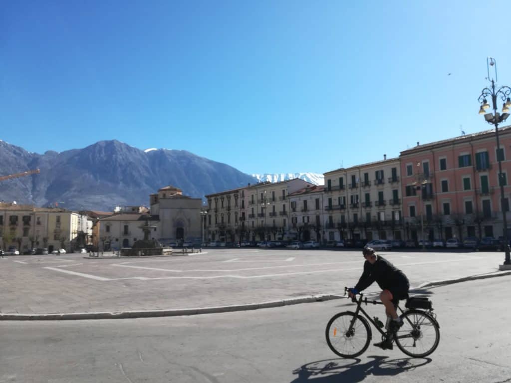 Ideale partenza del nostro giro, Sulmona è un importante crocevia fin dall’epoca romana. Infatti fu anche luogo natale del grande poeta latino Ovidio, la cui statua troneggia nella piazza centrale. Distesa in una vallata ai piedi della Majella, Sulmona è un grazioso centro ben collegato dalla linea ferroviaria Roma-Pescara, ed è quindi raggiungibile da entrambe le città con treni regionali che hanno servizio di trasporto bici al seguito (e in Abruzzo il supplemento bici è gratuito!).