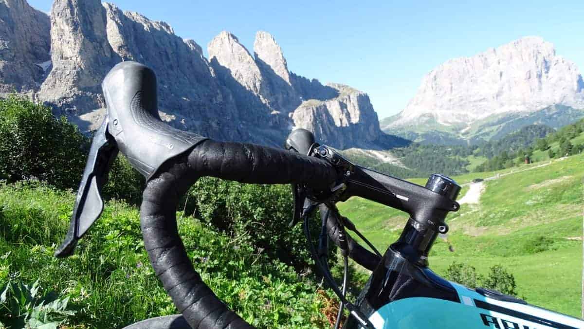 La salita del Passo Gardena è resa meno pesante dalla sosta al rifornimento. Torte, frutta, integratori, tutto quello che serve per ricaricare un po’ le batterie. Batterie che invece non posso ricaricare nella mia bicicletta. Si perché quest’anno sto utilizzando una Bianchi Aria e-Road, che per chi come me, non ha la possibilità di allenarsi intensamente, permette di godere di tutto questo, faticando comunque, ma supportando il giusto.