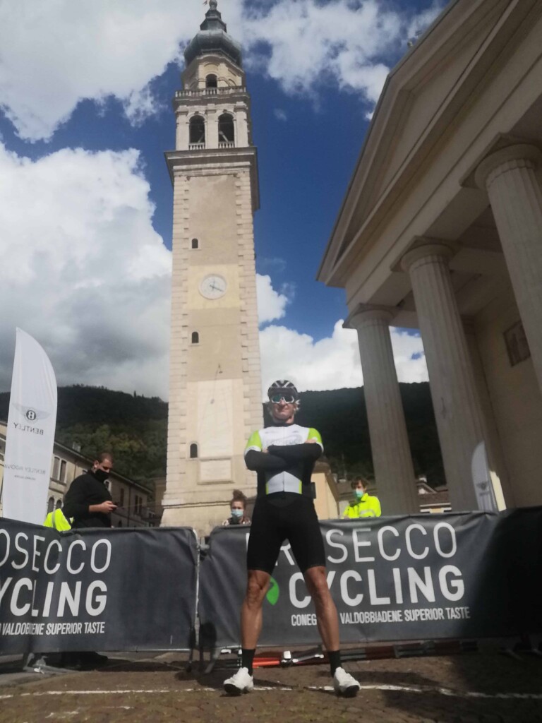 E’ una soleggiata domenica d’inizio autunno e l’aria alle 7,00 del mattino è frizzantina sulle colline a nord di Conegliano. Siamo in un luogo che il mondo ci invidia: le Colline del Prosecco, Patrimonio Unesco. Ovunque, a perdita d’occhio, filari di viti a impreziosire, come fosse un merletto, quei dolci declivi tanto amati dai ciclisti e non solo. L’occasione è una famosa Granfondo, la Prosecco Cycling, che si disputa da tanti anni ma che mai si era tolta dal mazzo delle tante manifestazioni che popolano il calendario degli eventi sportivi per gli appassionati di bici da corsa. Quest’anno, complice il lockdown e il fatto che quasi tutti gli organizzatori si sono arresi alle regole stringenti anti covid, è il primo grande evento che si è disputato nella quasi normalità.