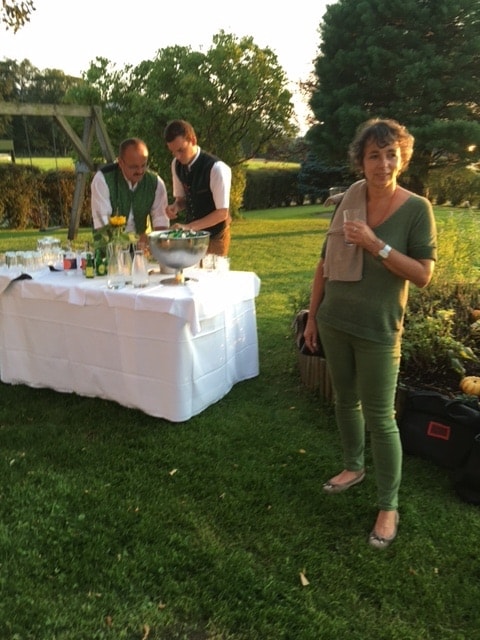 La giornata finisce con una bella cena nel bike hotel Gastagwirt in Eugendorf, che è hotel da tempo immemorabile, e contemporaneamente è anche fattoria e allevamento. Ce lo spiega il gioviale e loquace proprietario offrendoci un  gin tonic  fatto con uno squisito gin prodotto da loro (che unito alla birra precedente e al vino successivo ha probabilmente contribuito a un peggioramento globale della performance ciclistica del team), ma aggiunge con orgoglio che oggi l’albergo è annoverato nella catena dei Bike hotel della regione. Associazione assai selettiva, ci spiega, sono solo 15 gli hotel affiliati e ci elenca le caratteristiche indispensabili per poterne far parte: essere un hotel tra le tre e le cinque stelle, fornire le biciclette, avere la ciclo officina e tutti I tracciati garmin, le mappe per poter fornire ai clienti ciclisti tutto il necessario per godersi quel territorio che, dice offre un così grande e vario panorama ciclistico di ogni tipo, che per percorrerlo tutto a partire da lì, ci vorrebbero quattro settimane.