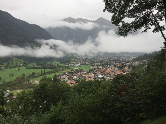 Sulla linea di partenza, ci sentiamo un pochino degli eroi, tutti tremanti per il freddo. La pioggia consiglia gli organizzatori di neutralizzare la corsa fino a Pinzolo. Scenderemo tutti in gruppo e a velocità ridotta per i tornanti bagnati, poi scatterà il cronometraggio ufficiale. La mia Impulso E-Road della Bianchi con i freni a disco, mi aiuta a essere tranquillo in discesa, malgrado la pioggia diventi più fitta. Purtroppo delle montagne che ci circondano, non è possibile ammirare nulla, le nuvole sono così basse che nella discesa le attraversiamo.