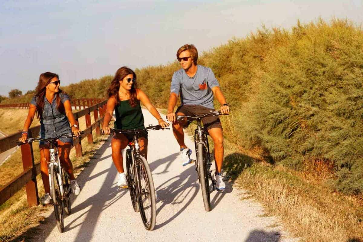 • il mercoledì, “Tour delle tre acque”, così definito perché segue i tre lati della penisola di Lignano, disegnati rispettivamente dalla laguna di Marano, dal corso del Tagliamento e dal mare, rivelando la particolarità del territorio lignanese strettamente legata, appunto, all’essere un’area in cui tre diversi tipi di acqua si incontrano creando un paesaggio davvero unico. È la più facile dei tour ed è adatto anche ai bambini;