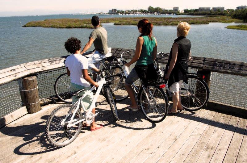 • il giovedì, “Marano Bike & Boat”, escursione di 40 km che combina bici e navigazione, raggiungendo in bici il borgo di pescatori di Marano (dove si gusta un piatto di pasta con pesce appena pescato), dopo aver attraversato tratti suggestivi come il ponte ciclabile sul fiume Stella e il fiabesco bosco di Muzzana, per rientrare a Lignano attraversando la laguna in barca (unico costo di questa escursione il biglietto di 4 euro per la navigazione);