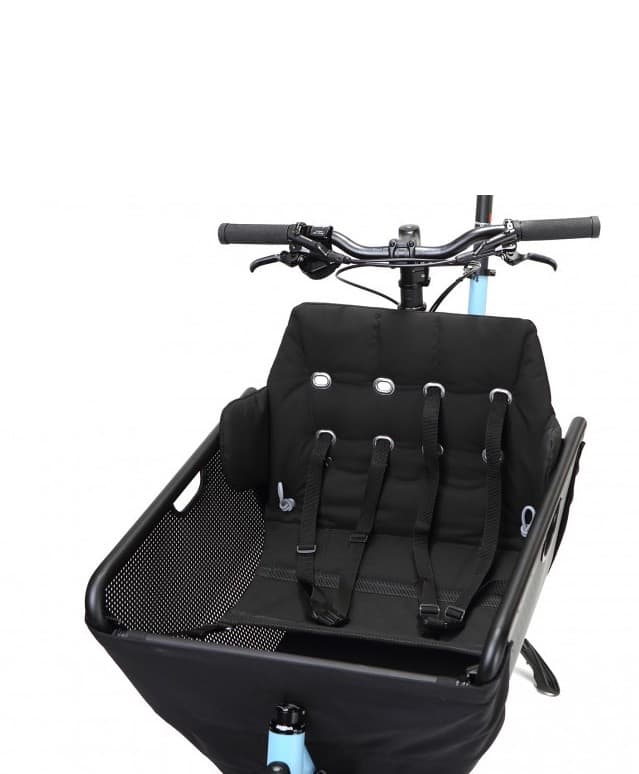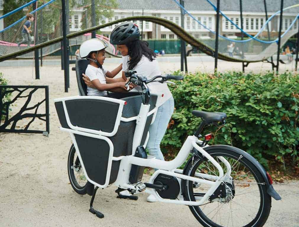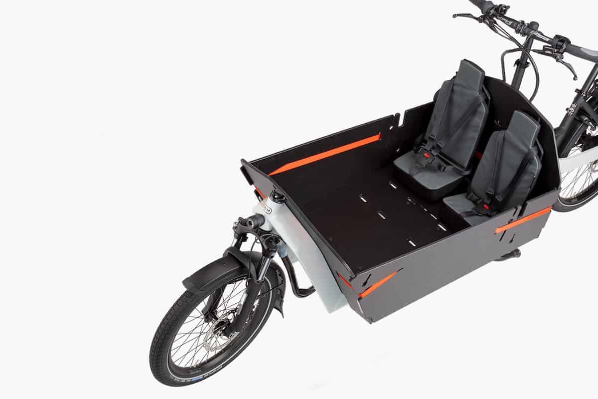 Non esistono cargo bike specifiche per il trasporto bambini, ma cargo adattate a questo utilizzo grazie ad accessori appositi (ed omologati) per il trasporto persone. Gli accessori che trasformano il cassone in cassone portabimbi sono spesso disponibili come articoli opzionali oppure sono tra le possibili configurazioni ordinabili della cargo, esattamente come accade quando si definisce l’allestimento e gli accessori di una vettura.
