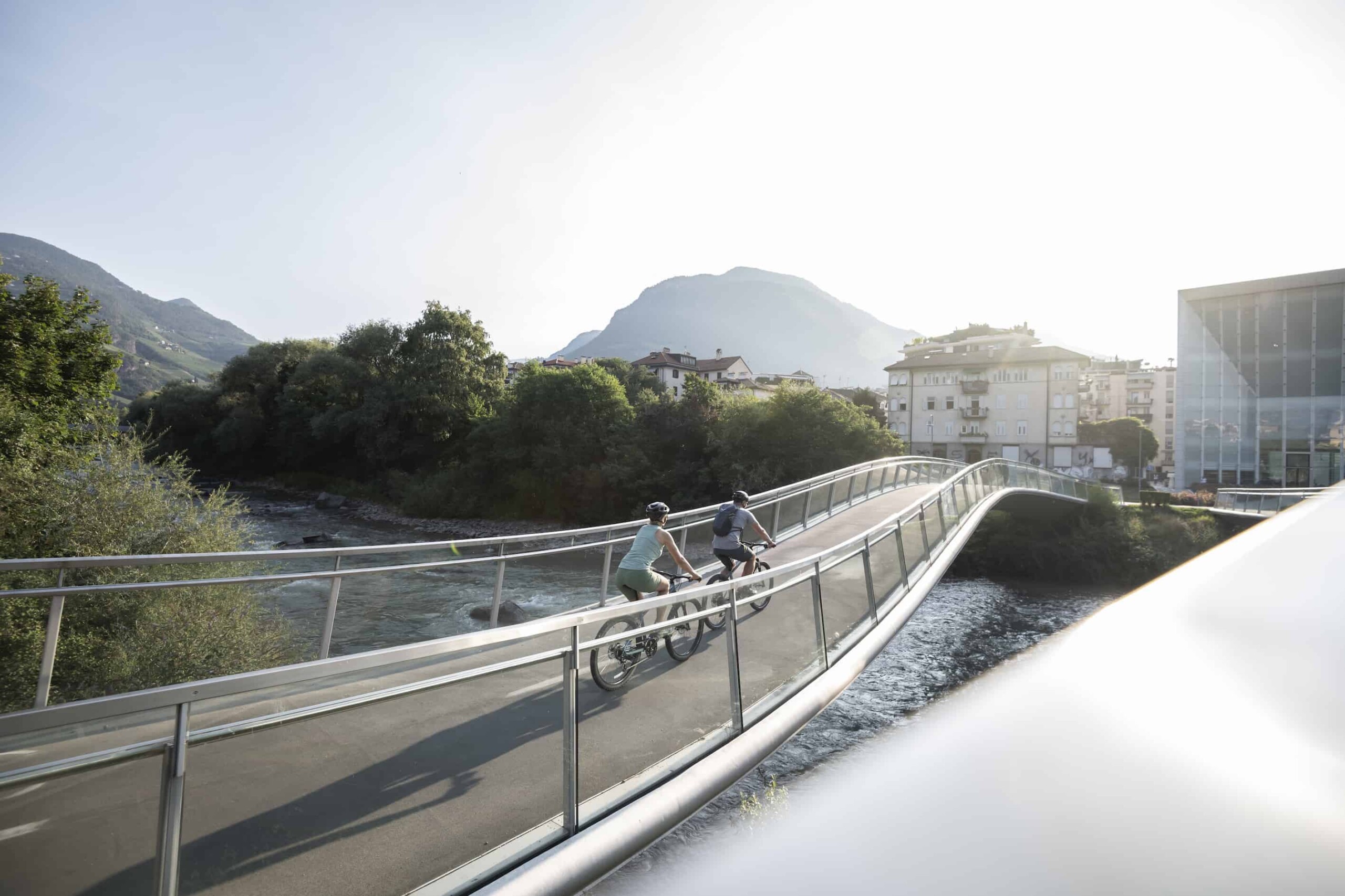 Ogni luogo d’interesse bolzanino può essere raggiunto in bicicletta, perché la rete di piste ciclabili di 50 km, collega tutti i luoghi strategici della città e anche della periferia. Bolzano è una città bike friendly con una media annuale di quasi il 30% di mobilità ciclabile. La segnaletica colorata dedicata ai percorsi in bici indica zone e luoghi di interesse, inoltre per chi non ha la propria bici con sé può usufruire dei servizi di noleggio. Oltre alle ciclabili cittadine si possono fare pedalate tra i meleti in fiore nella Val d’Adige, una gita su due ruote ai castelli della zona o un’escursione in mountain bike sui pendii circostanti. Inoltre si può attivare la Bikemobil Card biglietto combinato per l’uso di autobus, treno e bici a noleggio con validità provinciale disponibile come biglietto giornaliero, da 3 giorni e da 7 giorni (https://www.mobilcard.info/it/bikemobil-card.asp).