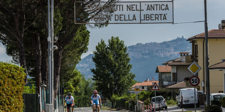 Giro di Scorticata – Percorso difficile di 65 km per 1.368 metri di dislivello, porta alla scoperta di alcune salite e passaggi importanti della Valmarecchia. Dalla vetta del Monte Titano si scende dal versante di Acquaviva, passando per la Baldasserrona, sorpassato il confine di Stato a Gualdicciolo, si segue la strada lungo il Fiume Marecchia fino ad imboccare la salita che porta alla cima di Torriana. Percorrendo il crinale che divide la valle del Marecchia da quella dell’Uso, si raggiunge Montebello, e dopo la discesa si prosegue lungo il corso del fiume Uso, e alla salita successiva, Ponte Uso. Con questo panoramico saliscendi si raggiunge il Passo delle Siepi, o Passo del Grillo, che risale le pendici del Monte Uffogliano e riporta nella Valmarecchia. Ultima salita è quella del versante di Villanova del Monte Titano, che riconduce a San Marino.