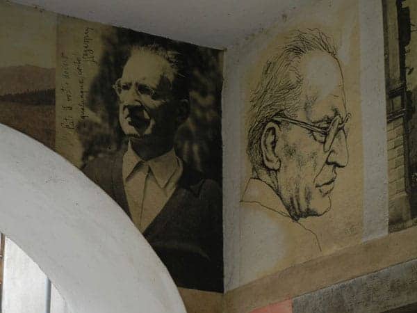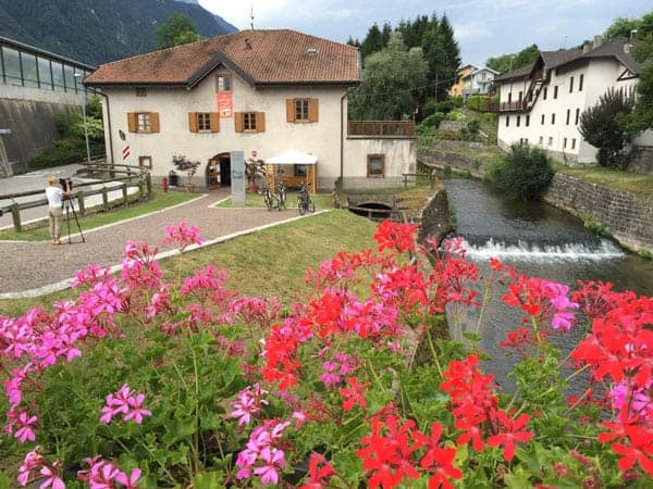 Una decina di chilometri e si arriva a Marter, piccola frazione di Roncegno Terme e appena al di là della ferrovia troviamo il “Mulino Angeli”, un tempo importante mulino per il grano, granoturco ed altri cereali coltivati in Valsugana ed ora finemente ristrutturato, che ospita una collezione permanente di spaventapasseri, continuamente aggiornata, tant’è che troviamo anche lo spaventapasseri ciclista…..Dopo la foto di rito con il “nostro” pupazzo, ci dirigiamo a Borgo Valsugana, che dista 5 km circa, paese noto per ospitare il centro studi dedicato ad Alcide De Gasperi, considerato uno dei padri della Repubblica Italiana e anche dell’Unione Europea, che nacque poco distante a Pieve di Tesino e che a Borgo morì nel 1954.