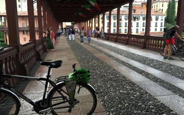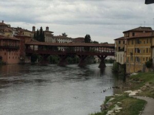 Dopo pochi minuti eccoci alla vista del famoso ponte coperto di Bassano, anch’esso progettato dal Palladio. Il ponte vecchio o ponte degli alpini, è uno dei simboli di Bassano, reso oltremodo famoso dalla canzone degli alpini “Sul Ponte di Bassano”. Il ponte totalmente costruito in legno, lungo 58 metri, poggia su 4 piloni di legno di forma triangolare, allineati al flusso d’acqua, ed è ricoperto da un tetto sostenuto da colonne tuscaniche, secondo lo stile del Palladio. Prende il nome “Ponte degli Alpini” perché furono proprio loro che ne curarono la ricostruzione dopo la seconda guerra mondiale. Ancora una piccola curiosità, all’inizio del ponte, dalla parte del centro città potete trovare il negozio della Bortolo Nardini, che è li dal 1779, risultando così la più vecchia distilleria d’Italia. Se siete qui in orario di aperitivo non potete mancare di entrare nella grapperia, rimarrete affascinati dai quasi 240 anni di storia che vedrete…