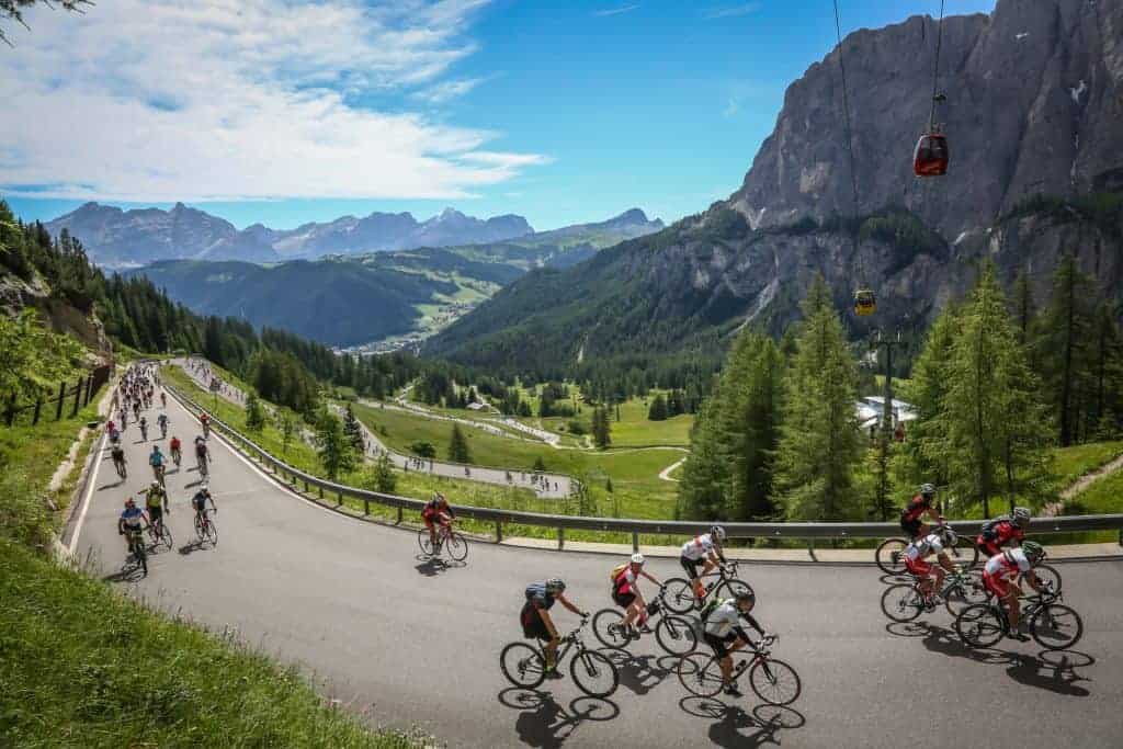 Novemila pettorali disponibili, trentatremila richieste di iscrizione pervenute già nove mesi prima, a fine ottobre: un percorso tutto asfaltato nel cuore delle Dolomiti, che percorre i mitici “quattro passi” (Campolongo, Pordoi, Sella, Gardena) e che per i più allenati si spinge anche sul Passo Falzarego e sul durissimo Passo Giau. Forse lo avrete capito, stiamo parlando della Maratona delle Dolomiti, granfondo di montagna più famosa al mondo, che si disputa ogni anno la prima domenica di luglio e che il 7 luglio prossimo giunge alla trentatreesima edizione.