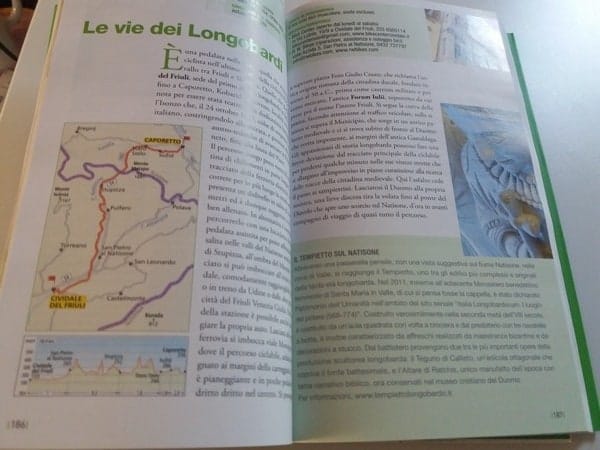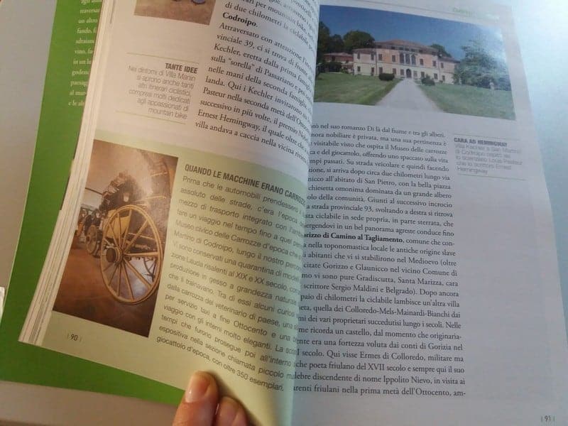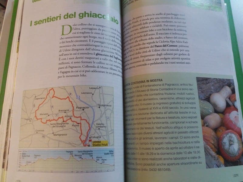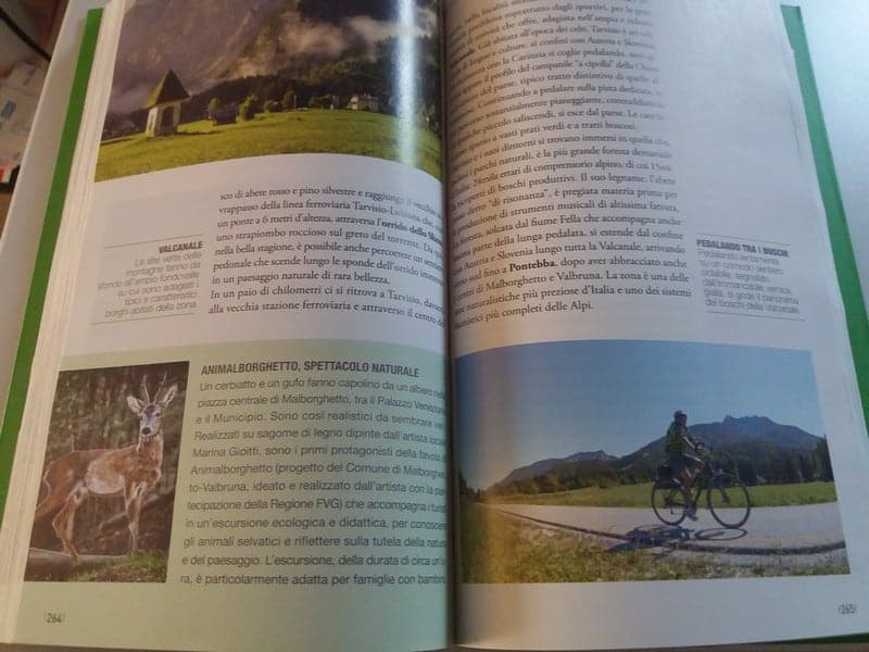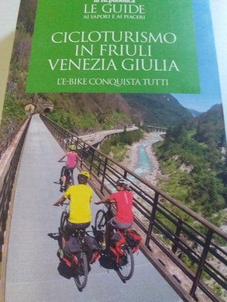 Fa parte delle guide di Repubblica “Le guide ai sapori e piaceri” che trattano delle eccellenze enogastronomiche, o degli itinerari alla scoperta delle tipicità locali, templi della bellezza e del relax, in generale raccontano il patrimonio del bel Paese, regione per regione. Una serie di guide facili da consultare e ricche di contenuti per scoprire il territorio. Si chiama “Cicloturismo in Friuli Venezia Giulia. L’e-bike conquista tutti” e propone 10 itinerari per le famiglie, 11 itinerari slow, 13 itinerari per mountain bike, 3 ciclovie, 6 itinerari per bici da corsa. In allegato propone la mappa degli itinerari. Il volumetto, di quasi 1.500 pagine, ci fa scoprire una Regione dal fascino aspro e talvolta selvaggio, ma ricca di meraviglie da scoprire. L’obiettivo, come spiegato nella prefazione è quello di proporre “uno strumento di servizio che possa dare un passo diverso alla vacanza di famiglia”.