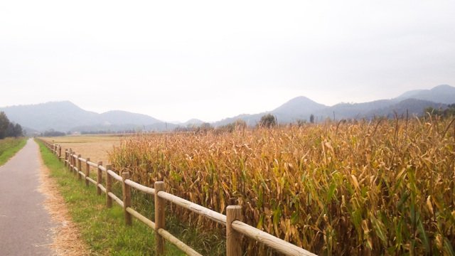 Protagonista incontrastato di questo secondo tratto della ciclovia padovana è il paesaggio rurale. Dal castello di Valbona a Bastia di Rovolon i campi di granoturco si alternano ai vitigni. La pista ciclabile è immersa nei profumi di mosto. Ad abitare questi argini in apparenza solo farfalle bianche.