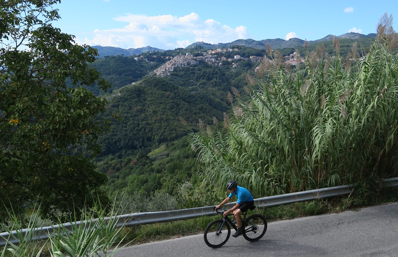 La salita successiva ci porta a “scollinare” Bellegra, che con i suoi 850 metri è “Cima Coppi” di questo itinerario circolare, ma è anche una terrazza formidabile sull’Agro Romano, sulla Valle del Sacco e poi più giù sulla Pianura Pontina e persino sulle sue Isole quando il cielo è terso.