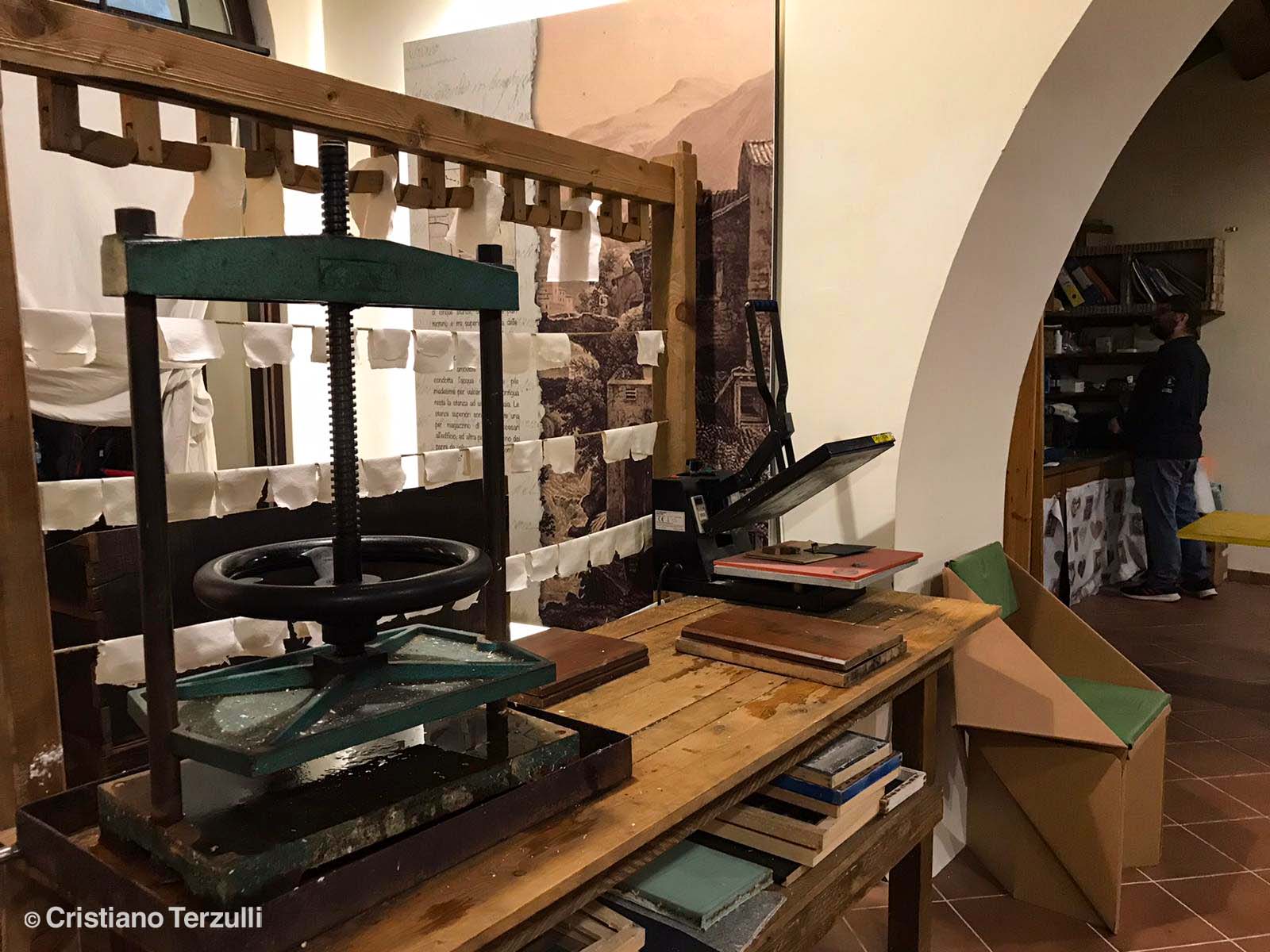 Sempre a Subiaco visitiamo poi il Borgo dei Cartai, un museo immersivo che unisce la fruizione museale con la produzione di manufatti in carta. Nel Borgo sono ricostruiti tutti i macchinari di una cartiera dell’800 perfettamente funzionanti, a memoria della secolare esperienza e cultura della Cartiera cinquecentesca di Subiaco.