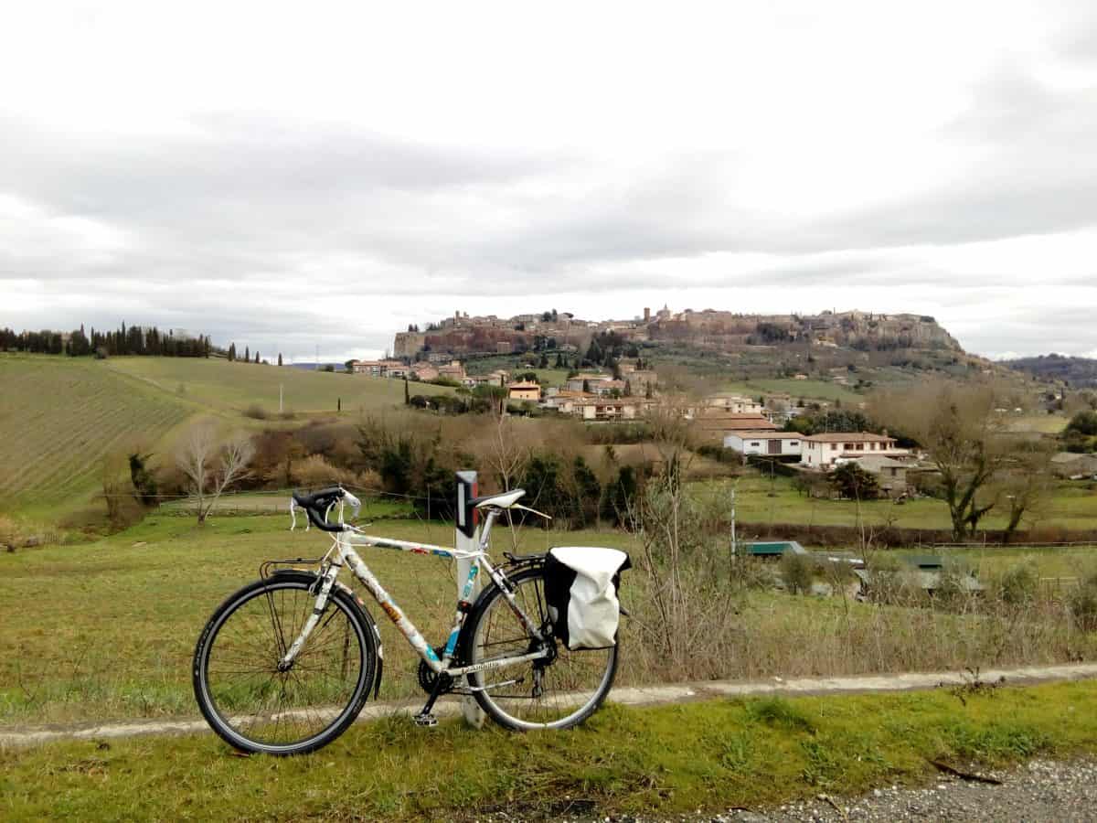 E mentre la attraversiamo, la sua storia sembra sfilare davanti ai pedali in rapida successione cronologica: prima passiamo per le rovine etrusche e romane dell’insediamento di Volsinii, sito archeologico di grande interesse; poi ci imbattiamo nel suo suggestivo castello medievale, sede del museo della città; infine, scendendo per i suoi vicoletti, attraversiamo il corso della Via Francigena e il borgo nuovo, adagiato sulle rive del lago.