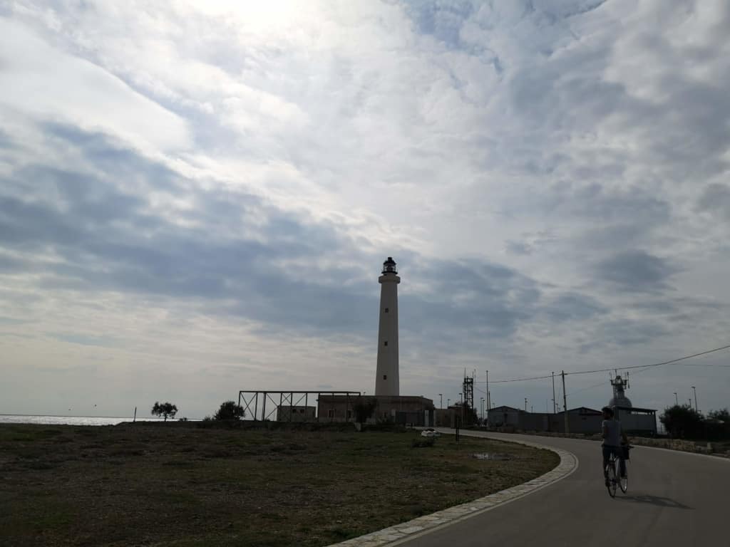 Tornando indietro verso ovest, incontriamo il tunnel ciclabile che collega le due parti di isola. Esistono due strade alternative, ma sono sentieri sterrati, uno dei quali, quello indicato al ritorno nella traccia, è molto ripido e fattibile in MTB oppure scendendo di sella. Il tunnel, come già anticipato, prevede una corsia ciclabile separata che garantisce la sicurezza dell’attraversamento. Il panorama qui è cambiato, anche se è passata una manciata di chilometri. Si sente più profumo d’Africa e di Grecia, l’azzurro scrostato dalle persiane delle case bianche tradisce la costanza del vento Favonio, che batte da sud, dal deserto.