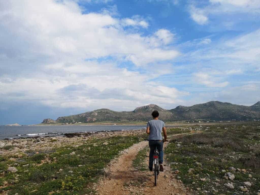 Uscendo dalla cittadina di Favignana, dove arrivano anche i traghetti da Trapani, è facile trovare i cartelli marroni che indicano il percorso cicloturistico. Data la forma a farfalla dell’isola, sulla sua strettoia al centro tra le due “ali” c’è un piccolo ma ripido rilievo montuoso, in cima al quale si erge il Castello di Santa Caterina. A parte questo, il resto dell’isola è completamente pianeggiante, il che rende questa pedalata adatta a chiunque, oltre che sicura anche per bambini.