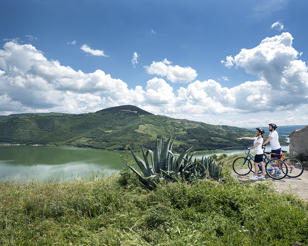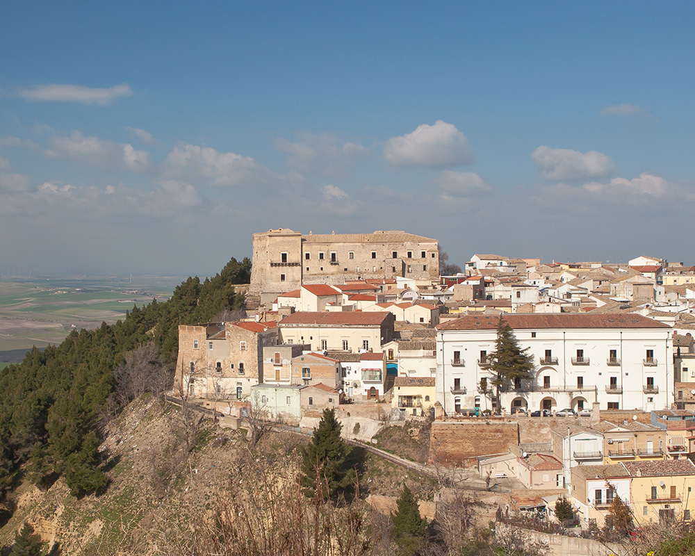 E dalla fede nella natura a quella cristiana, un esempio del genio dell’architettura sacra, è l’Abbazia di Sant’Angelo, la prima costruzione che appare alla vista di chi raggiunge Orsara. Immersa nel verde, comprende la Chiesa di San Pellegrino, la Chiesa dell’Annunziata e la Grotta di San Michele, scavata nella roccia presumibilmente nel 200 d.C., all’interno di un anfratto naturale. La strada panoramica che costeggia la Valle del torrente Cervaro conduce a Bovino, borgo medievale con i vicoletti lastricati in pietra di fiume e ben 800 portali di pietra, realizzati dai maestri scalpellini locali. Tra i vicoli tortuosi, si ritrovano sette chiese, tra cui la Cattedrale, la seicentesca Chiesa del Carmine e la romanica Chiesa di San Pietro. A pochi chilometri da qui spunta dall’alto di un colle Deliceto, il cui Castello Normanno Svevo domina il centro storico. Straordinario il Rione Pesco, fatto di grotte scavate nel frontone dello sperone Elceto. Da qui la pedalata è in discesa verso il Basso Tavoliere e Ascoli Satriano che custodisce secoli di storia. La cittadina è situata su un’altura che si suddivide in tre colline, Pompei, Castello e Serpente, sulla valle del fiume Carapelle, ed è un vero e proprio museo a cielo aperto con importanti reperti della battaglia del 279 a.C. dove combatterono i Romani e l’esercito di Pirro. E prima di arrivare a Canosa si tocca anche Stornara che deve il suo nome all’alta concentrazione di storni che popolano le tante aree verdi vicine.