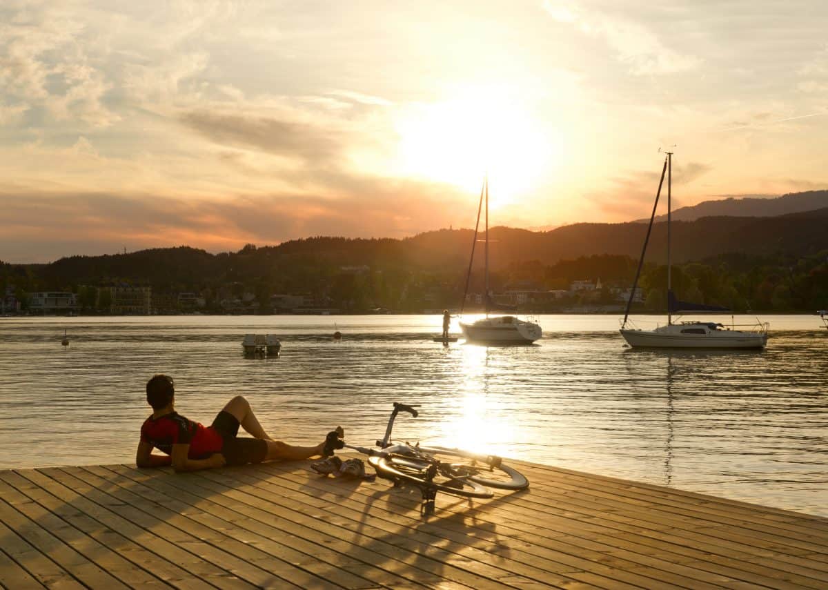 Si pedala in mezzo alle Alpi Carniche e alle Gailtaler Alpen lungo la Gailtal-Radweg, la ciclabile del fiume Gail, che si snoda per 90 chilometri da Kötschach-Mauthen a Villach, qui si può fare una piacevole pausa balneare sul lago Pressegger See.