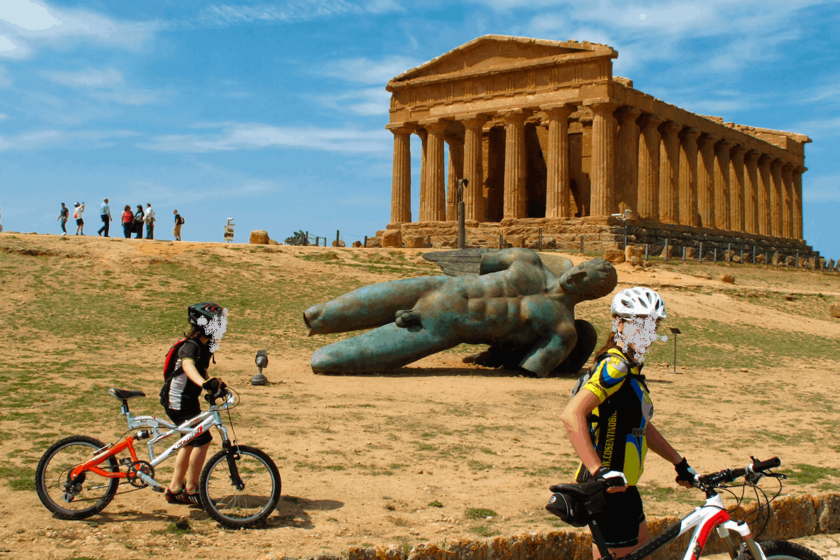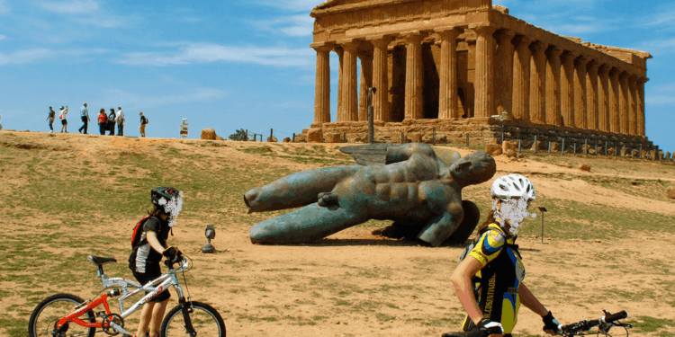 La via verde della Valle dei Templi ad Agrigento ha inizio in prossimità dell’ingresso a valle della collina nell’area Porta V e termina al Santuario di Demetra a monte dell’area archeologica. 10 km che per i ciclisti significano un attraversamento su sentiero battuto di cemento, terreno in materiale arenario e conglomerato bituminoso. Cosa ci propone? Un itinerario di interesse archeologico, culturale, naturalistico e paesaggistico, dove vengono evidenziate le attività di recupero della tessitura storicizzata di sentieri esistenti. Il percorso inizia dalla foce di Punta Akragas, ne risale il corso lungo la piana alluvionale e le strette valli che conducono all’altopiano calcarenitico sede del centro storico attuale. Motivi di interesse turistico in quest’area sono costituiti dalla foce del fiume S. Leone – Punta Akragas, la confluenza dei fiumi S. Anna – S. Biagio, il giardino della Kolymbetra, i boschi di eucalipto e gole del fiume S. Biagio. Una proposta di integrazione nel territorio del Parco e il collegamento al sistema ricreativo ed escursionistico imperniato sulla accessibilità e riqualificazione della costa, sulle green ways lungo le aste fluviali, sulla cintura verde degli eucalipteti, sul sistema delle attrezzature all’aperto.