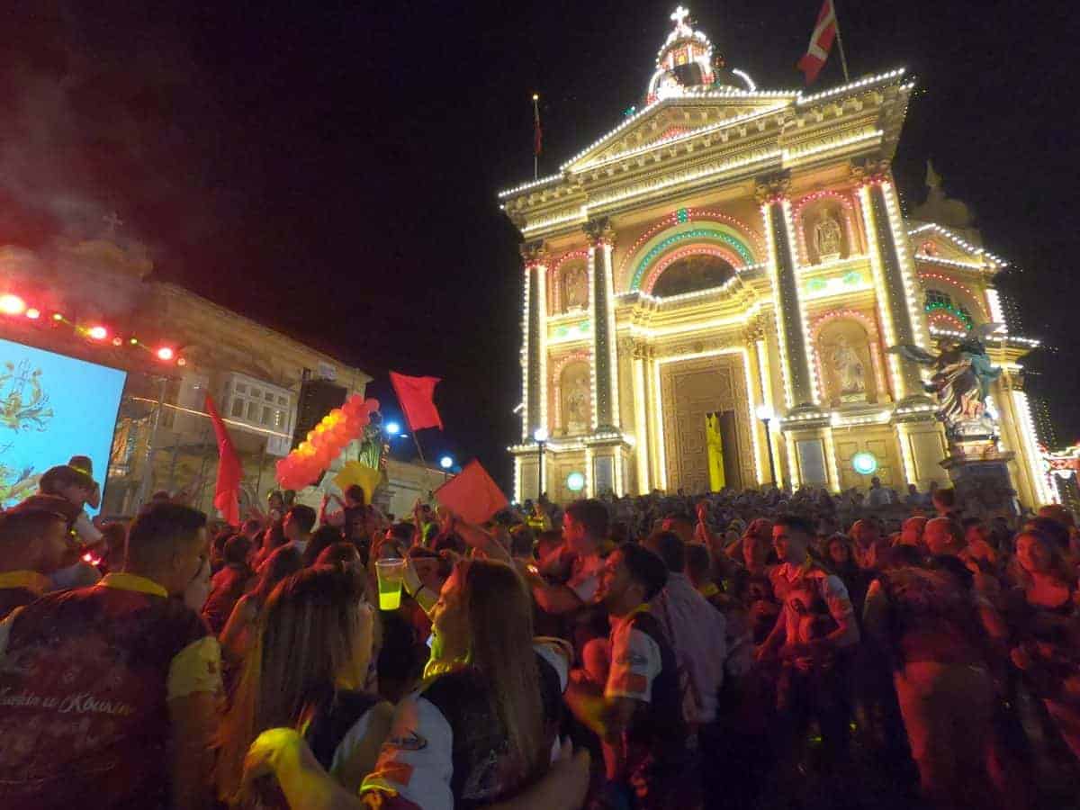 Il nostro b&b era a Victoria di Gozo, capitale dell’isola, proprio di fronte alla storica cittadella fortificata. Il 23 giugno a Malta si festeggia San Giovanni, patrono dell’isola e protettore dell’ordine dei cavalieri di Malta. A pochi chilometri da Victoria, a Ix-Xewkija, un paesino di 2.300 abitanti c’era una festa patronale. Al nostro arrivo ci siamo trovati di fronte a qualcosa di inaspettato: una cattedrale la cui cupola è la terza per grandezza in Europa, centinaia di ragazzi in festa, canti religiosi a ritmo di tecno e fuochi pirotecnici da finale dei mondiali!