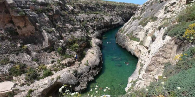 Ripartiti lungo il percorso sterrato, abbiano iniziato una serie di saliscendi fino alla grotta di Calipso, che domina dall’alto la bella spiaggia di sabbia rossa, Ramla I-Hamra. Si ritiene che la grotta di Calipso sia quella a cui Omero si riferiva nell’Odissea. La legenda narra che Gozo fosse l’omerica isola di Ogigia e che la grotta sia quella in cui la ninfa Calipso tenne Ulisse come prigioniero d’amore per sette anni.