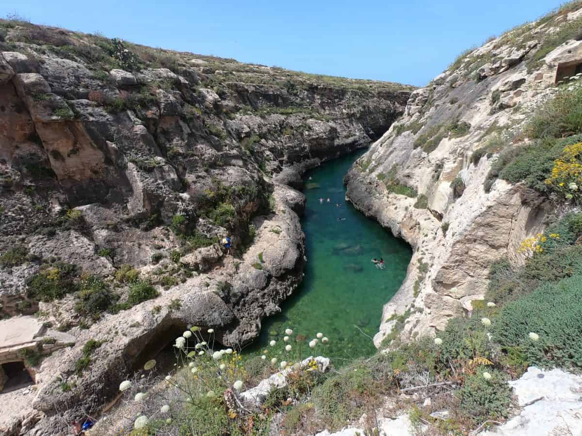Prima di partire per il giro dell’isola visitiamo la cittadella di Victoria, imponente struttura medievale che sovrasta la città con le sue torri. Al suo interno stretti vicoli, una cattedrale, un’antica prigione ed un museo che ne racconta la storia. Saliti in bicicletta, abbiamo attraversato le calde ed aride campagne dell’isola, perfette per pedalare in mountain bike. Lungo la strada ci siamo imbattuti in un mare da favola: il fiordo di Wied il-Ghasri, una suggestiva insenatura naturale dall’acqua trasparente. Non poteva mancare un bagno in questo luogo meraviglioso!