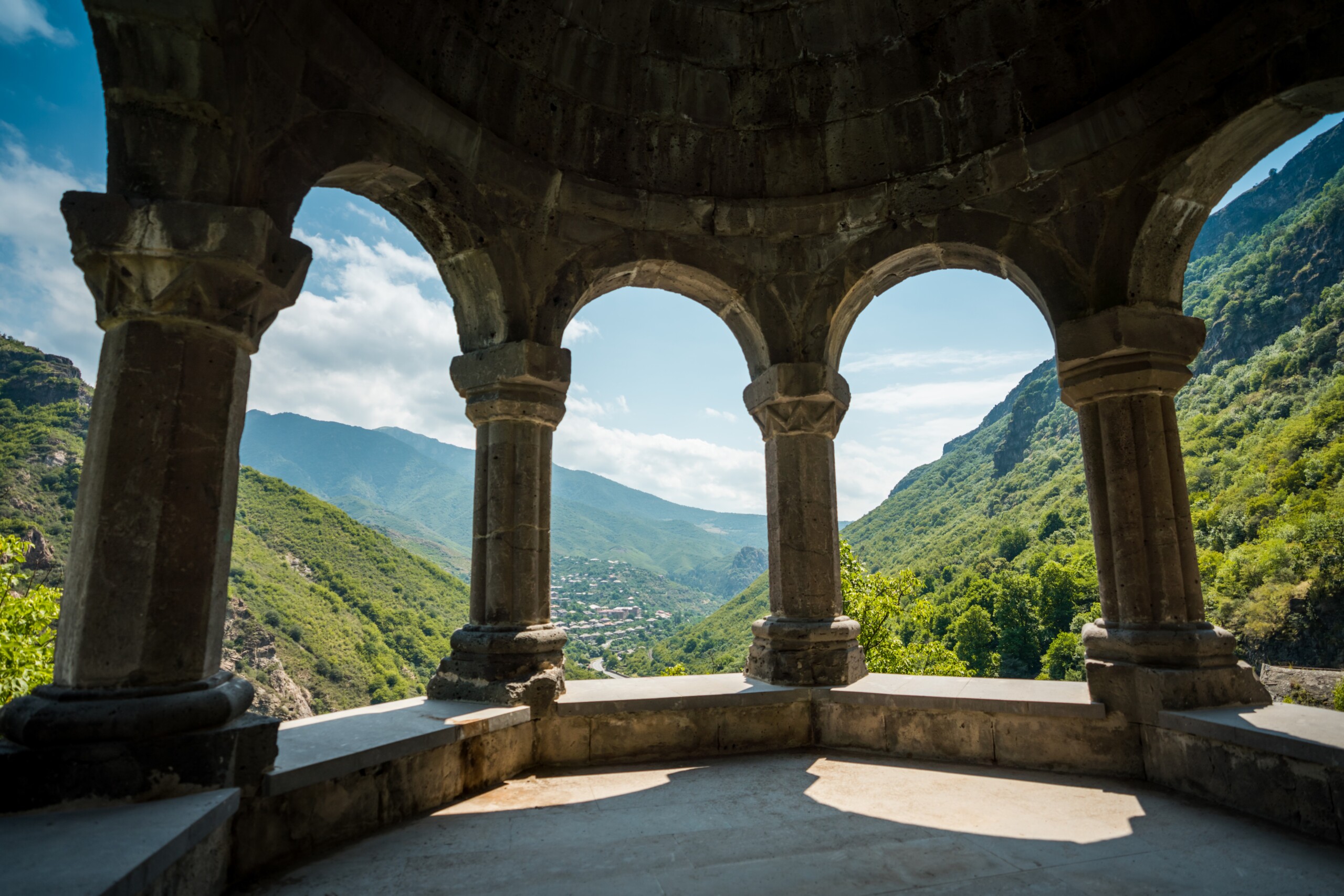 I Complessi Monastici di Haghpat e Sanahin situati nella regione di Lori a circa 6 km di distanza uno dall’altro, rappresentano l’architettura medievale armena al suo apice. Fondati nel X secolo, Haghpat e Sanahin sono noti per la loro straordinaria fusione di stili architettonici bizantini e locali. I complessi includono chiese, biblioteche e refettori, e offrono uno sguardo sulla vita monastica dell’epoca. Situati uno di fronte all’altro, separati da una profonda gola rocciosa, offrono vedute eccezionali sulle montagne circostanti.