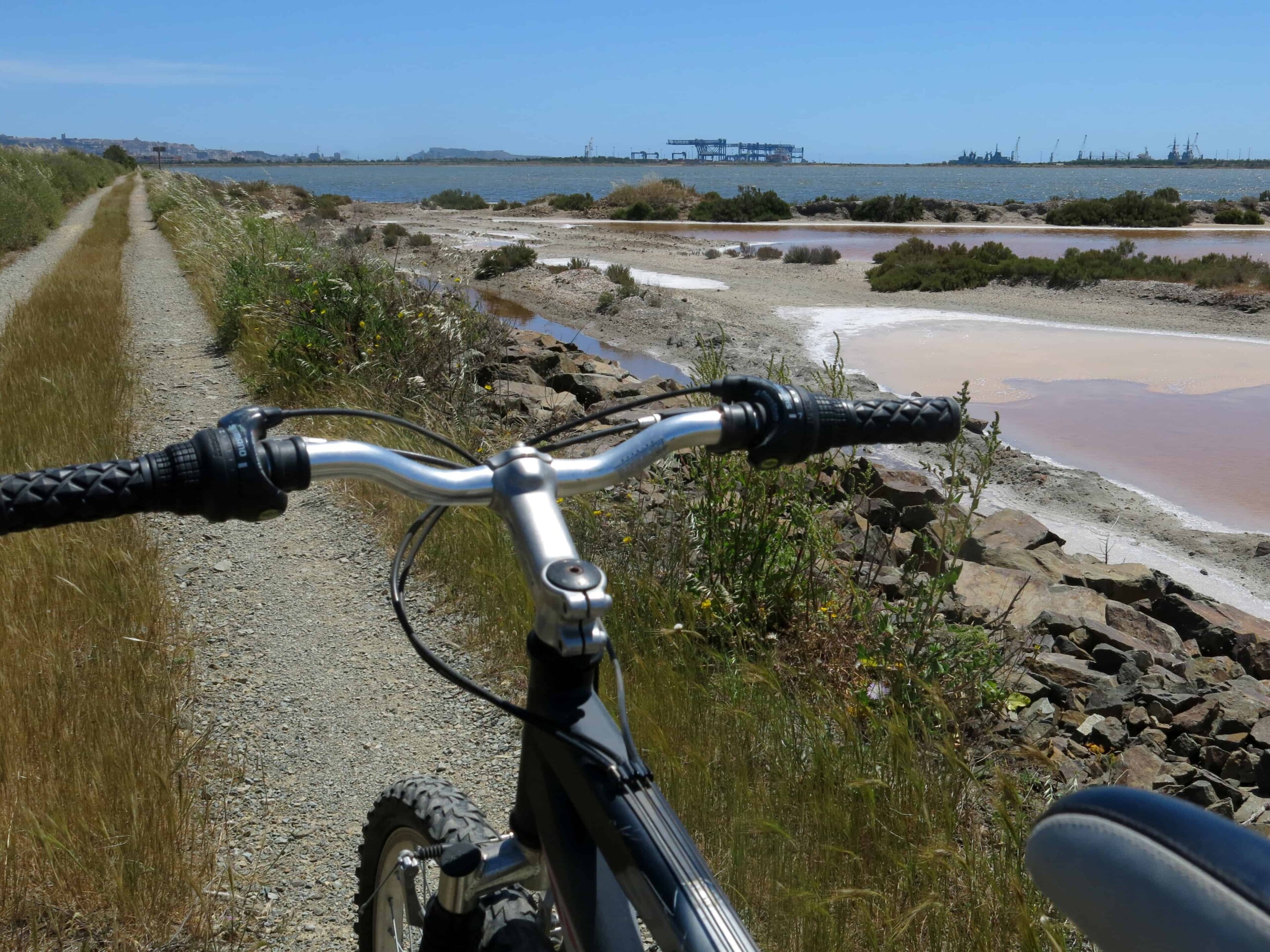 Il primo punto di interesse storico, in mezzo a tanta “insolita” natura, sono i ruderi del villaggio aziendale, Macchiareddu. Da qui ci si dirige nella darsena di porto San Pietro dove un tempo si imbarcava il sale e dove ancora si trovano i resti delle chiatte semiaffondate. Con la bici si costeggiano i bacini evaporanti fino alla chiusa di Cabunastasiu. Sullo sfondo la città di Cagliari, che merita anch’essa una visita anche su due ruote. Dopo aver aggirato la Laguna Vasta e costeggiato quella di San Gilla, si pedala seguendo l’estuario del Rio Cixerri, fino alla magnifica chiesa romanica di Santa Maria di Uta.