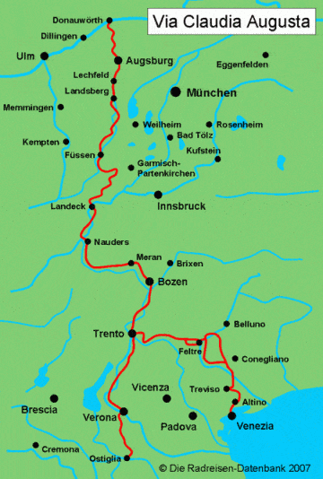 Partenza Donauworth (D), Arrivo Ostiglia (variante Po), Altino-Venezia (variante adriatica)