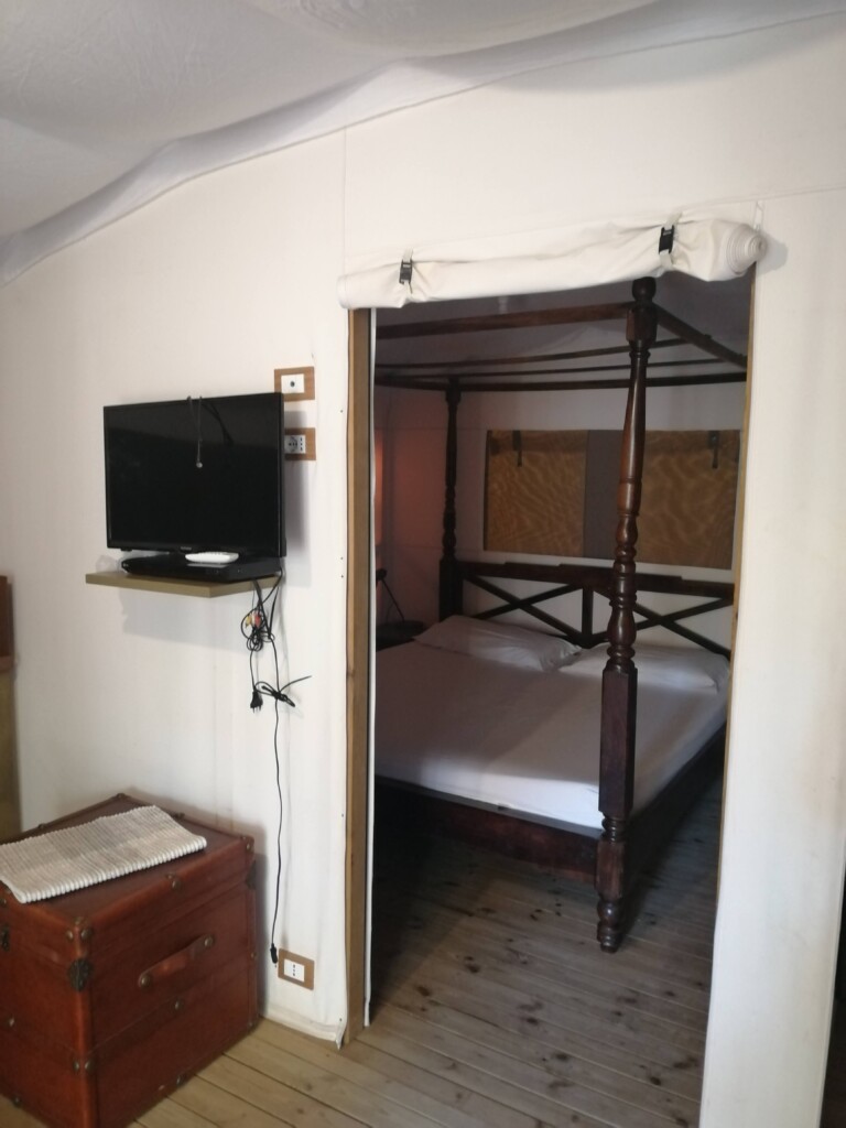 Per chi amasse l’atmosfera africana ci sono anche delle tende con il letto a baldacchino e doppio bagno cucina e salotto.