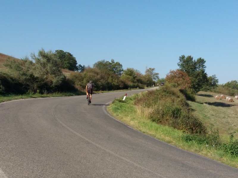 Quanto è bello pedalare in autunno in una giornata di sole tiepida sui sali e scendi delle colline toscane. Noi di Viagginbici lo abbiamo provato ed è bellissimo. Un week end di ottobre in e – bike a Casole d’Elsa, ad una ventina di minuti da Siena. Assieme a noi c’era anche chi, dotato di preparazione adeguata, ha utilizzato la gravel per attraversare questi territori baciati dai colori d’autunno e dal sole. Il nostro percorso si è sviluppato su 612 metri di dislivello e poco meno di una quarantina di chilometri di strada. Una strada ad anello che parte e arriva in paese a Casole attraversando Mensano – Pieve Scola – Scorgiano – Mensanello. Un percorso fatto di sentieri e strade a bassa percorrenza. Un sali e scendi dolce che qui viene chiamato “mangia e bevi” tra questi borghi ricchi di storia e natura.