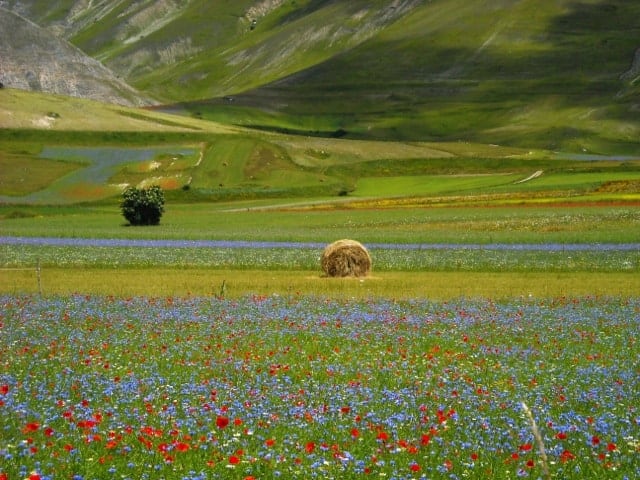 Il momento più magico, e forse più conosciuto, per percorrere questo itinerario va da metà giugno a fine luglio (ma attenzione, il periodo può variare di anno in anno in base al meteo), quando prende forma il fenomeno della fioritura e il verde del Pian Grande lascia spazio a lenticchie, papaveri, fiordalisi, narcisi, ranuncoli, generando un incredibile caleidoscopio di colori: lo spettacolo è unico e indimenticabile.