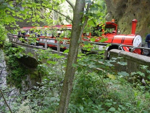 chiusa al traffico) che portava a valle, in un susseguirsi di scorci spettacolari sulle acque azzurre del fiume e di fantastici fenomeni di erosione. L’escursione è fattibile sia a piedi, che con lo speciale trenino che piacerà tantissimo ai più piccoli, questi gli orari; qui invece potrete consultare il nostro articolo sulla Valcellina, da pedalare in famiglia.