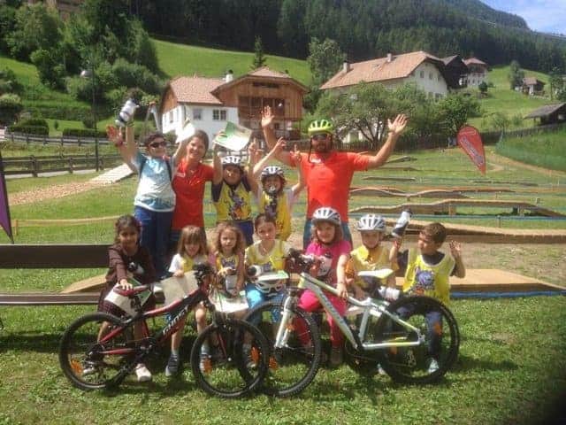 Equipaggiati con mini MTB e caschetti, eccoli pronti a partire. Sono i bimbi che trascorrono le loro vacanze estive con i propri genitori in Val Gardena e che non vogliono perdere l’occasione di imparare qualche trucco della mountain bike.