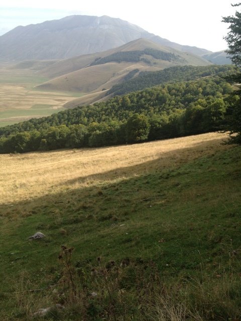 Le montagne sono scoperte, dai 1500 metri in su, con zone di pascolo alternate a piccoli boschi di faggi, querce e pini. Quello che più mi ha colpito è l’ampiezza delle vedute. L’Umbria ha una grandezza di orizzonti che lascia senza fiato, ma rimane sempre dolce, senza mai cedere all’asprezza degli sfasciumi alpini. Ho trovato molti punti dove raccogliere informazioni e mappe, soprattutto a Norcia, ma anche una volta fuori, nei piccoli villaggi arroccati, o in cima ai pascoli, la gente è sempre disponibile a indicarti la strada.