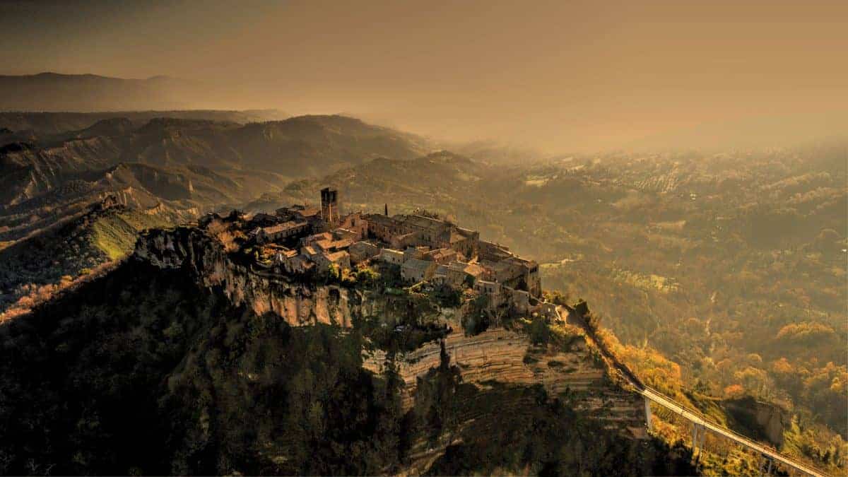 Tra i borghi fantasmi più famosi del Belpaese c’è Bagnoregio, nell’alto Lazio, al confine con l’Umbria, all’interno della Valle dei Calanchi, in provincia di Viterbo. Per raggiungerlo bisogna attraversare un lungo ponte di 200 metri che dalla collina più vicino portano all’accesso del centro storico. Ad oggi Civita contra 11 abitanti, gli ultimi “survivor” di una condizione di precarietà strutturale che ha svuotato il paese. Qui il tempo pare essersi fermato al Medioevo, momento in cui questo borgo ha avuto il suo apice, poi, già dall’Ottocento ha cominciato a svuotarsi fino a quel che ne rimane.