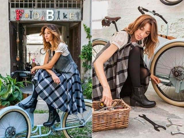 Fridabike, o meglio Antonella è una ciclo-mamma imprenditrice. Sì, perché dalla sua esigua di scarrozzare i suoi due pupi in giro per Milano è nata l’idea di un negozio che costruisce biciclette cargo. Così Fridabike è cresciuto fino a diventare un laboratorio-negozio reale e funzionante.