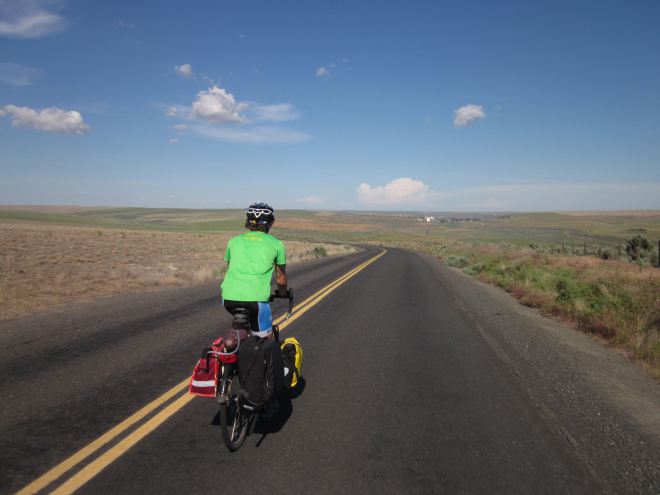 Dopo sei giorni, 350 miglia, un’alta catena montuosa e innumerevoli ecosistemi – un’autentica giungla; la foresta di Cascade; i Channeled Scablands; il deserto irrigato; i Rangelands punteggiati da artemisia tridentata; altipiani ricoperti da frutteti; foreste di pini gialli assetati; il luppolo rampicante a perdita d’occhio nella Yakima Valley – mi sento allo stesso modo anch’io.