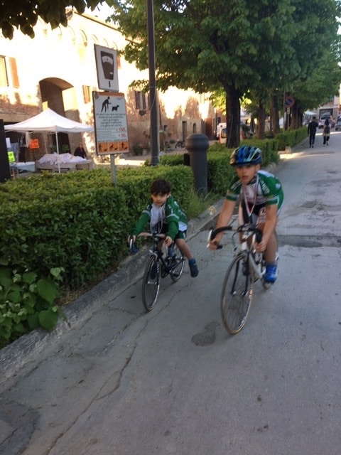 E poi ci sono i bambini, ciclisti in miniatura su altrettanto minuscole bici da corsa, reduci dalla Under 23 appena conclusa.