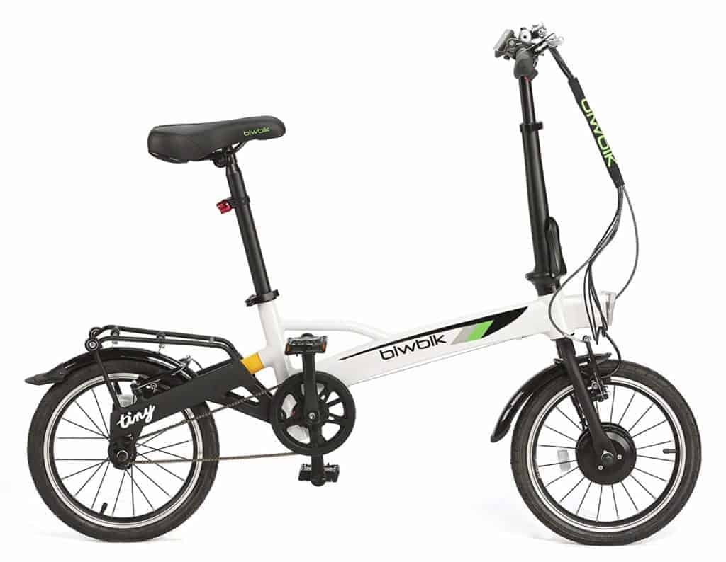 Una tra le e-bike pieghevoli più leggere: solo 12 chili inclusa la batteria: la Biwbik ha un motore Brushless da 250W e ruote da 16 pollici ideali per i piccoli spostamenti urbani. Autonomia stimata dai 35 ai 55 chilometri.