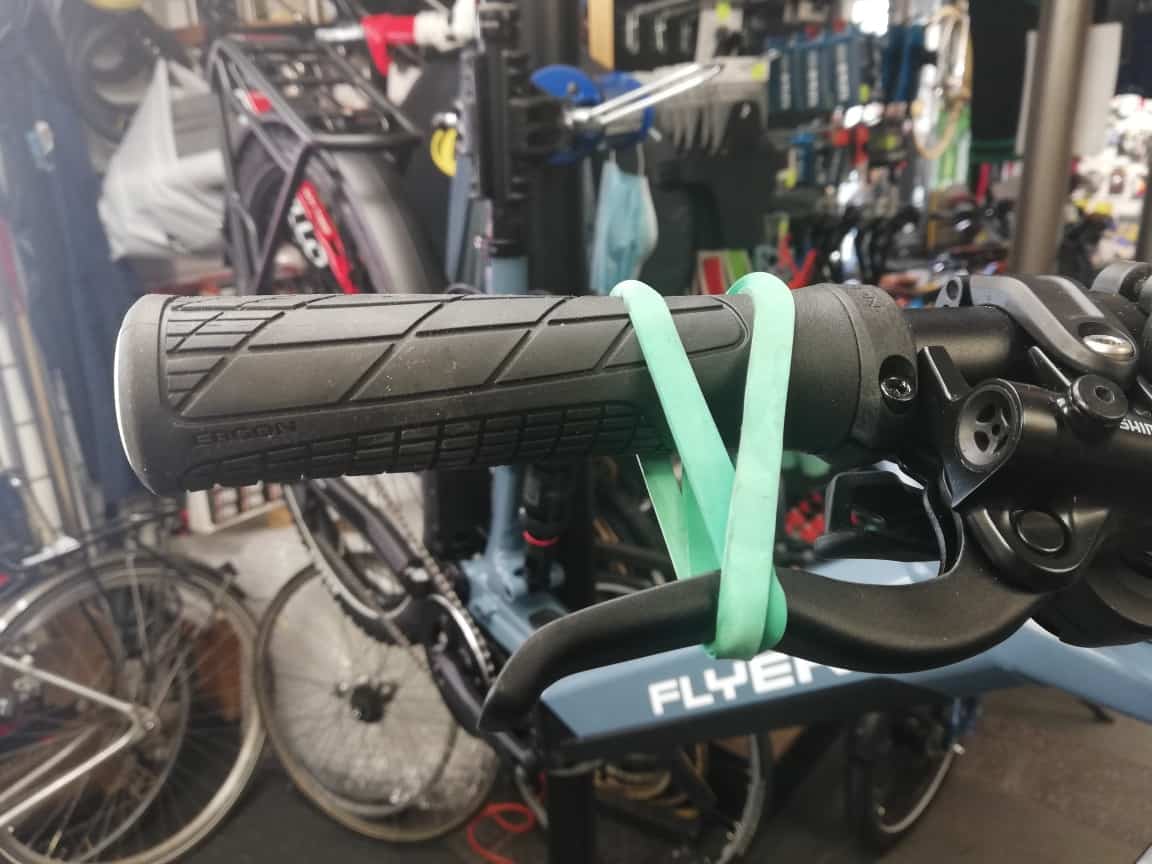 È sempre per questa ragione che – ad esempio quando si opera sulla bici con le ruote smontate – è bene mettere nella pinza freno uno spessore, e allo stesso tempo mantenere in pressione l’impianto con un elastico che tenga premuta la leva freno.